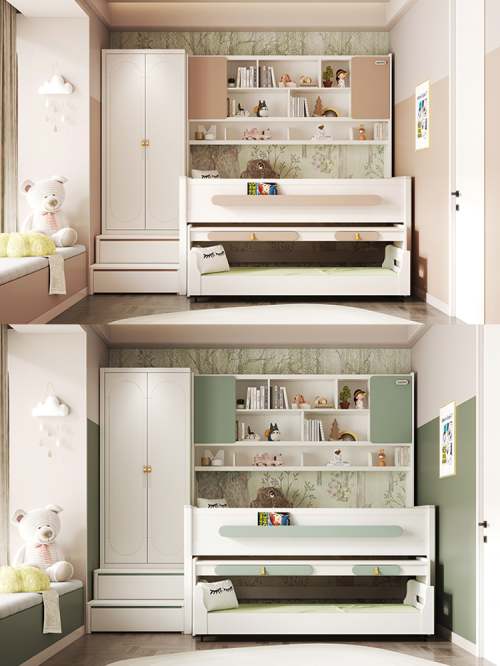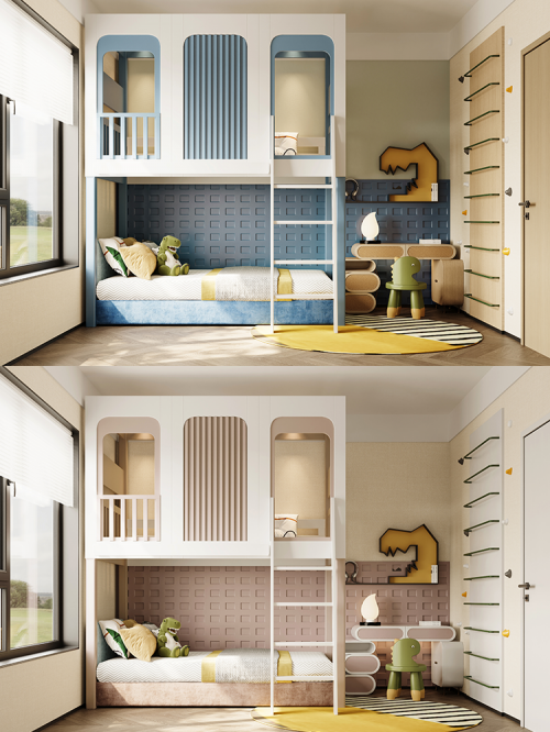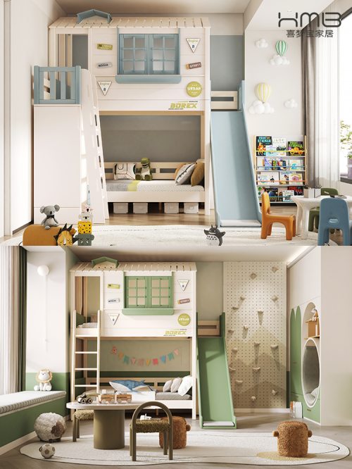 ⭐休息区:选择上下床或侧边储物多功能床,纵向利用空间,创意小屋造型让孩子有自己的秘密基地,配套的滑梯挂梯,欢乐有趣,给孩子们一个美好的童年。